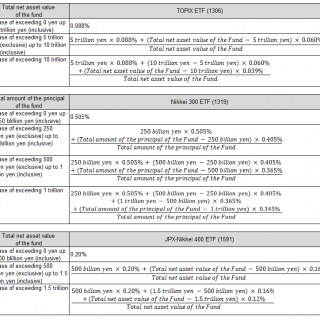 | Nikkei 300 ETF (1319) | 1.82 billion | 0.5555%(0.5050% exclusive of taxes) |