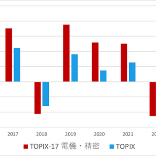 TOPIX-17電機・精密指数とは日本株市場全体の動向を表す代表指数であるTOPIXの構成銘柄のうち、電気機器と精密機器の業種に分類される銘柄で構成される株価指数です。
